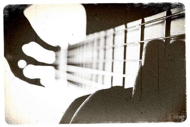 Самая тонкая струна дает наиболее высокий звук, а самая толстая - низкий. Высота звука зависит от длинны струны, которая изменяется прижиманием струны к ладам, а также от силы натяжения, которая в свою очередь, изменяется с помощью колков на головке грифа. Нельзя натягивать струны слишком сильно, иначе они могут порваться.